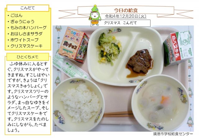 12月20日(火)12月のお楽しみ!「クリスマス献立」です。