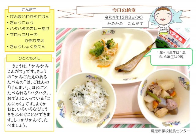 12月19日(月) おさかな王国 境港の日献立!今月は、地元の「はまち」を紹介です。