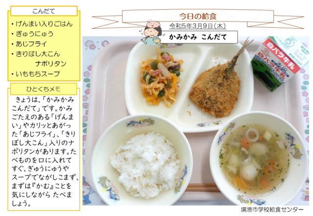 3月16日(木) 今日は「おさかな王国境港の日」献立です。