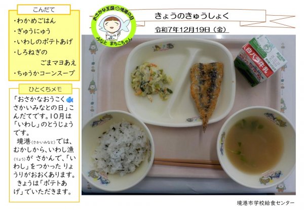 12月19日(金)地元のお魚が登場する「おさかな王国境港の日」です。