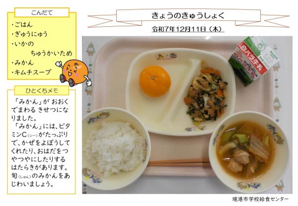 きょうのきゅうしょく令和7年12月