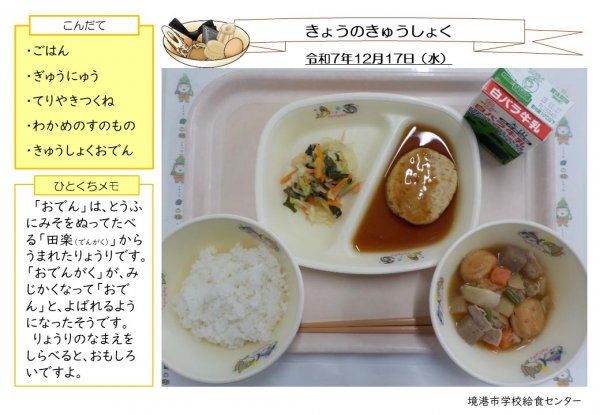 12月17日(水)寒い日に食べたくなる「おでん」の登場です。