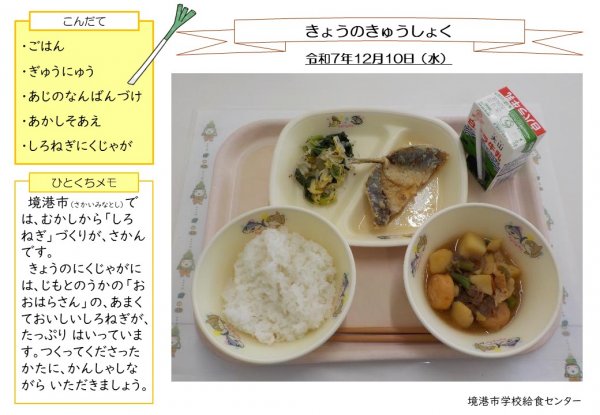 12月10日(水)地元の農家さんの「白ネギ」が入った肉じゃがです。